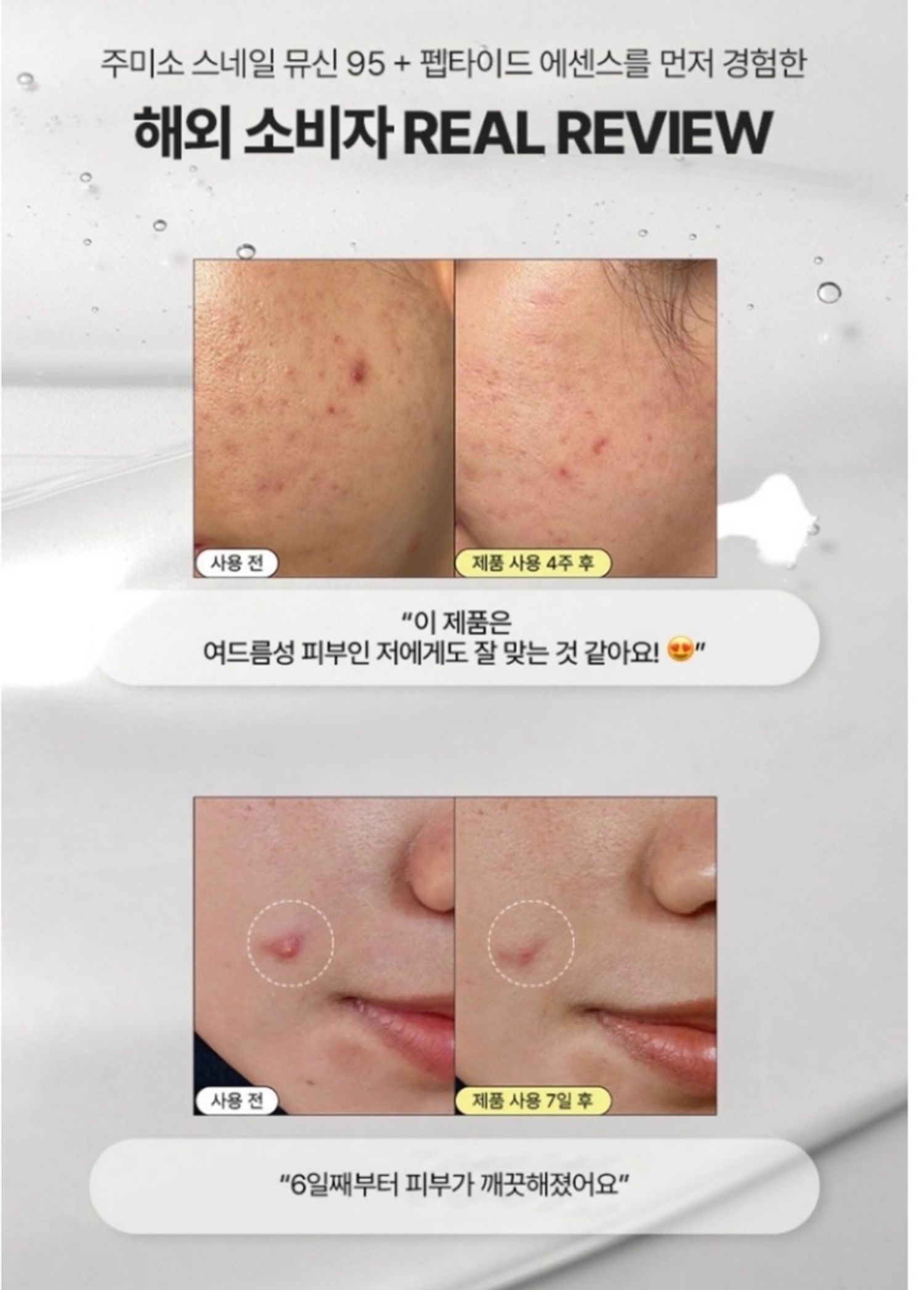 95% эмгэн хумсны салсыг агуулсан уг эссенс нь арьсыг чийгшүүлэн сэргээж өгөхөөс гадна 5 төрлийн пептидийн найрлагуудын тусламжтайгаар арьсыг чангалах, өргөх үйлчилгээг давхар үзүүлнэ.