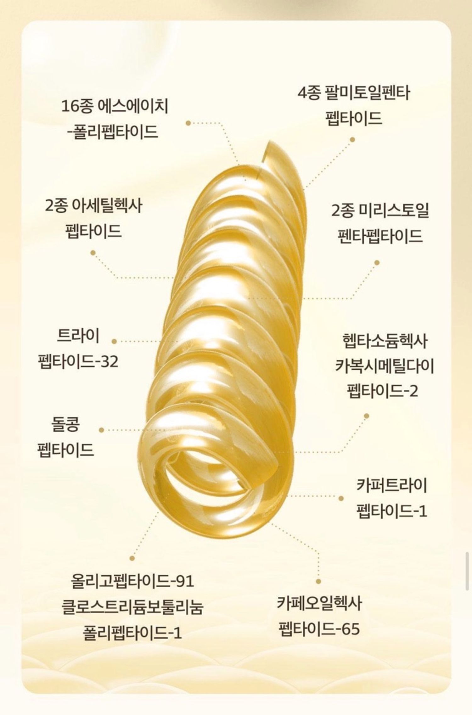 Арьсны насжилт, үрчлээний тоо, уян хатан чанар сайжирдаг нь 19 төрлийн эмнэлзүйн туршилтаар батлагдсан ампул. 13 төрлийн пептидийн иж бүрдэл болон өөр хэмжээст коллаген агуулсан тул гүн үрчлээний харагдацыг багасгаж хялгасан үрчлээг арилгахаас гадна арьсны уян хатан чанарыг нэмэгдүүлэх гурван үе шат бүхий систем. Хүний биед ээлтэй Торгоны пептид нь өндөр шингээлттэй ба Gold Line коллаген нь арьсыг чангалж өргөх үйлчилгээтэй. Нэг удаа хэрэглэснээр дух, нүдний хэсэг, хацар, амны ирмэг, эрүү, хонхорхойг өргөх үр дүн судалгаагаар гарсан. 72 цагийн турш чийгшүүлнэ. Арьсыг цочроох шинж чанаргүй.