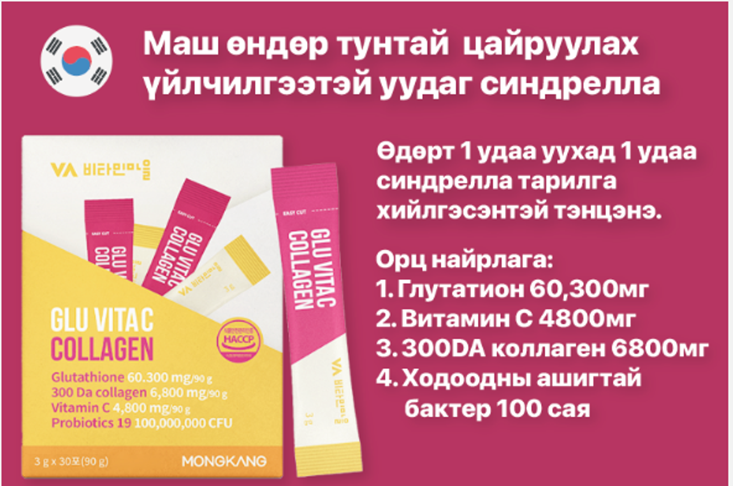 Хэрэглэх заавар: Өдөрт 1 удаа усаар даруулж ууна.